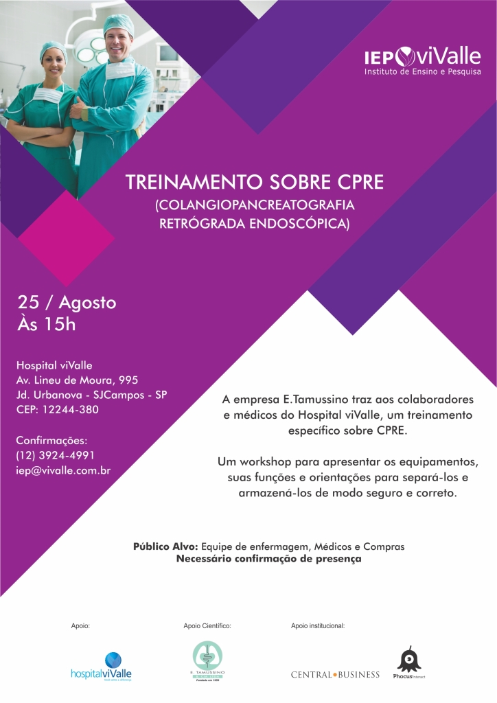 A empresa E.Tamussino traz aos colaboradores e médicos do Hospital viValle, um treinamento específico sobre CPRE. Um workshop para apresentar os equipamentos, suas funções e orientações para separá-los e armazená-los de modo seguro e correto.