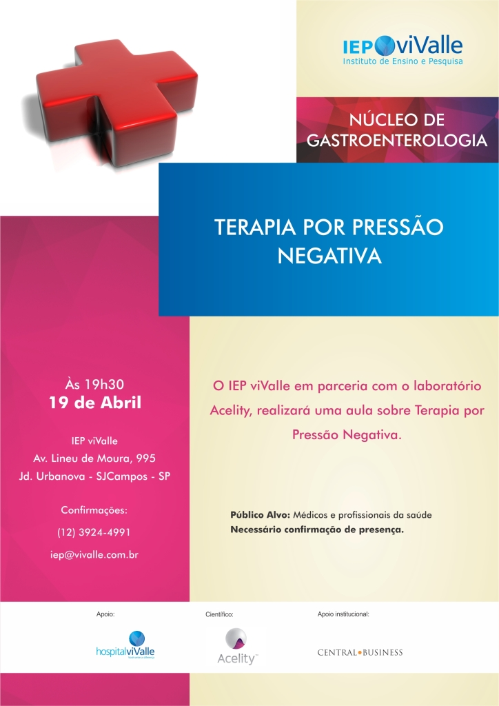 O IEP viValle em parceria com o laboratório Acelity, tem o prazer de convidá-lo a participar de uma curso sobre TERAPIA POR PRESSÃO NEGATIVA.