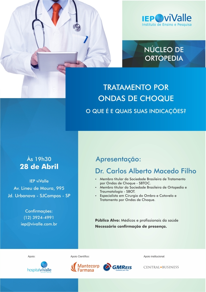 Local: Auditório do IEP - Hospital viValle / Av. Lineu de Moura 995, Jd. Urbanova - São José dos Campos SP