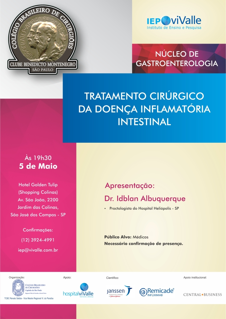 Temos a honra de convidá-lo a participar de uma reunião sobre "TRATAMENTO CIRÚRGICO DA DOENÇA INFLAMATÓRIA INTESTINAL", dia 05/05.