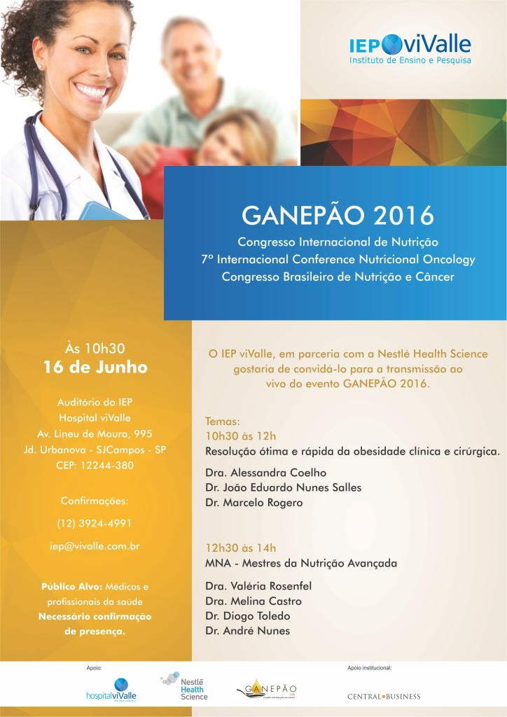 O IEP viValle, em parceria com a Nestlé Health Science gostaria de convidá-lo para a transmissão ao vivo do evento GANEPÃO 2016.
