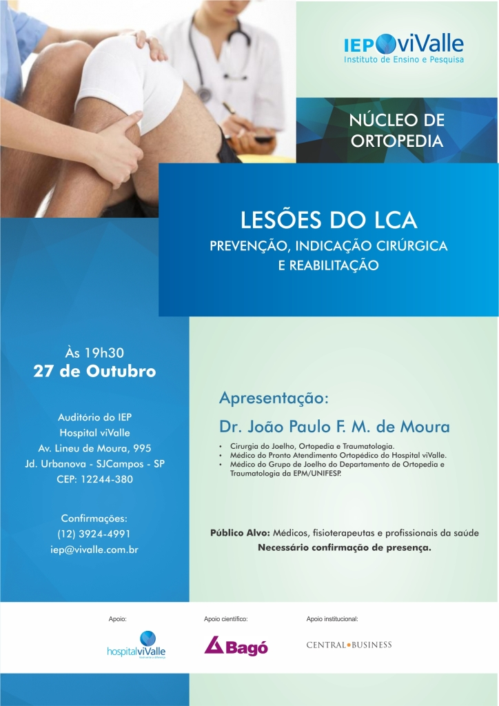 Nucleo de Ortopedia IEP viValle convida para "Lesões do LCA - Prevenção, Indicação Cirúrgica e Reabilitação".