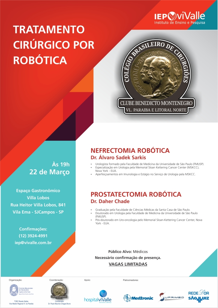 Apresentação: Dr. Daher Chade – Graduação pela Faculdade de Ciências Médicas da Santa Casa de São Paulo; Doutorado em Urologia pela Faculdade de Medicina da Universidade de São Paulo (FMUSP); Pós-doutorado em Uro-oncologia pelo Memorial Sloan-Kettering Cancer Center, NovaYork - EUA.