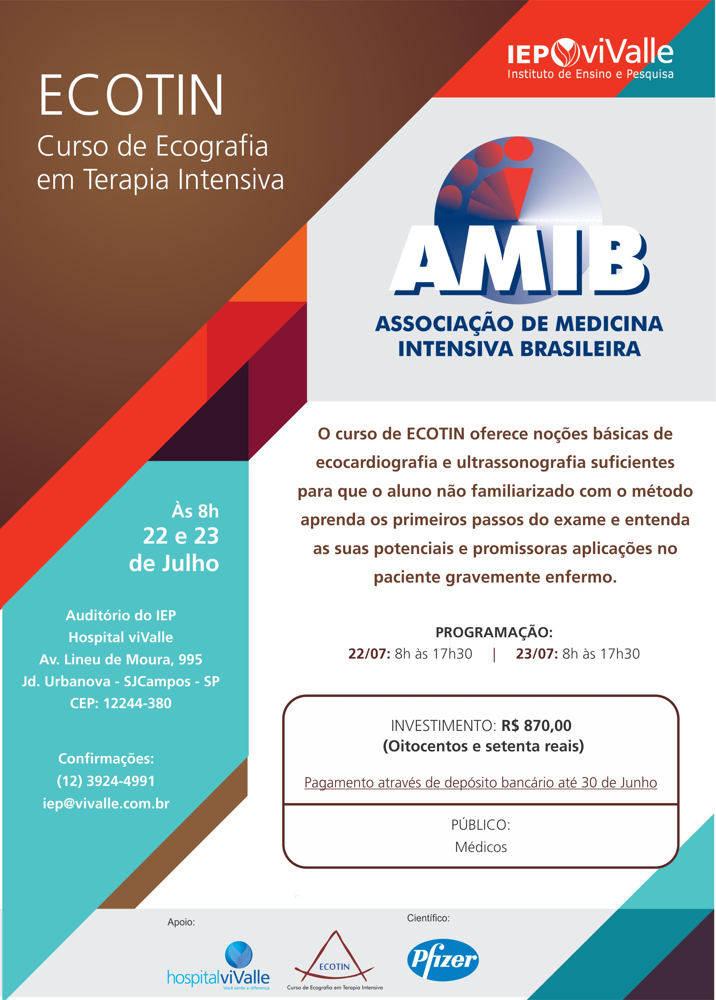 IEP viValle em parceria com AMIB (Associação de Medicina Intensiva Brasileira) convida para o curso "ECOTIN - Ecografia em Terapia Intensiva".
