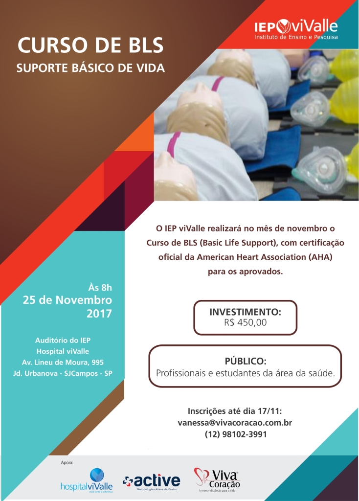O IEP viValle realizará no mês de novembro o Curso de BLS (Basic Life Support), com certificação oficial da American Heart Association (AHA) para os aprovados.