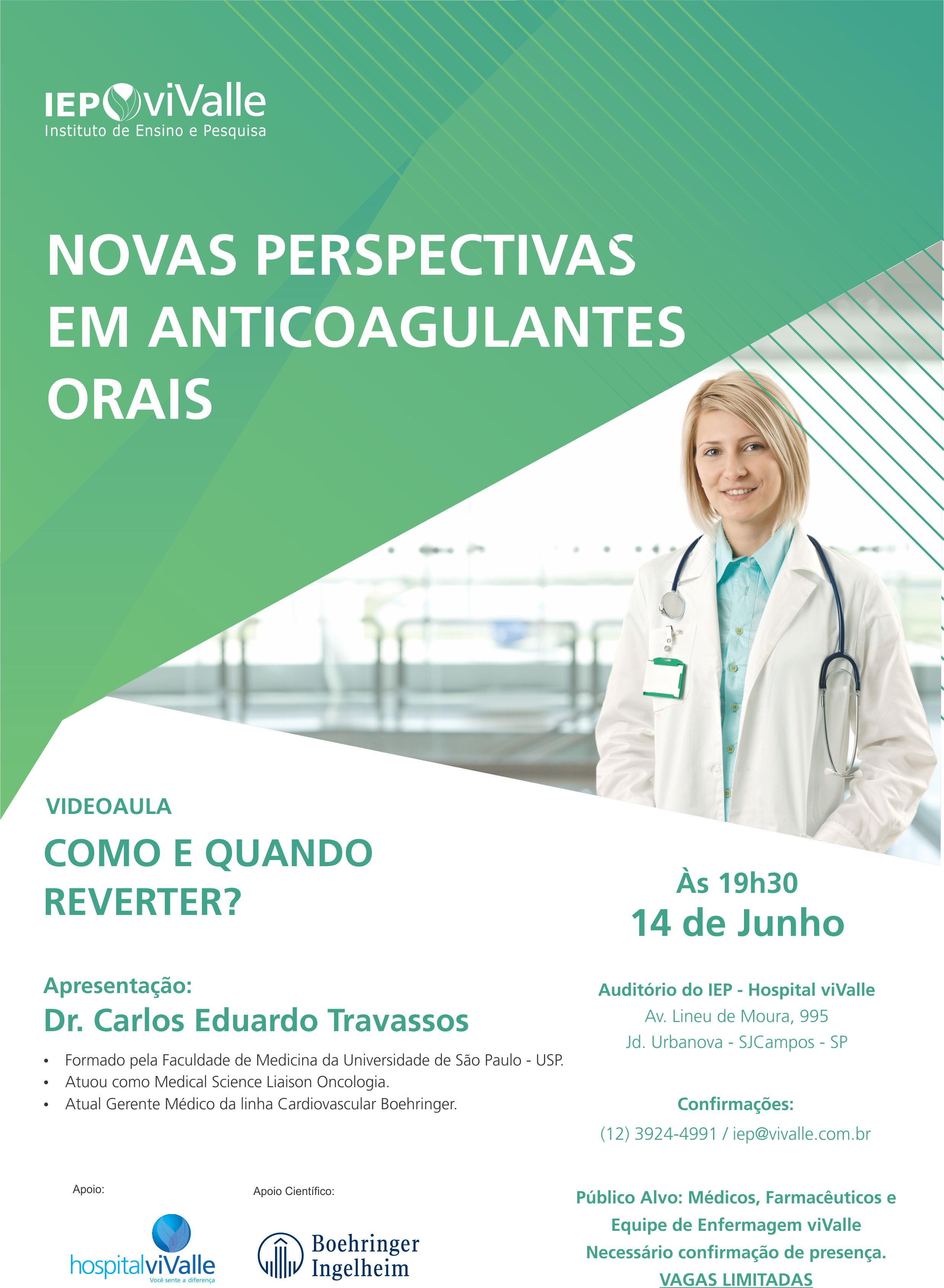 IEP viValle convida para Videoaula "Novas Perspectivas em Anticoagulantes Orais - Como e Quando Reverter?".