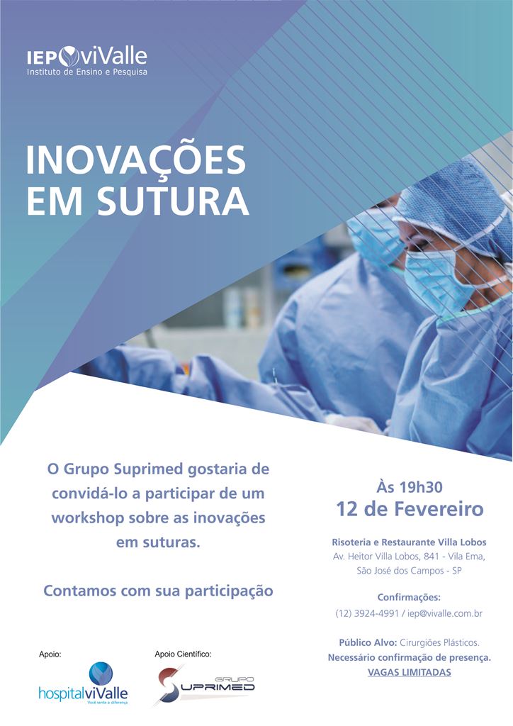 IEP viValle, em parceria com o Grupo Suprimed, convida para workshop sobre as inovações em suturas.