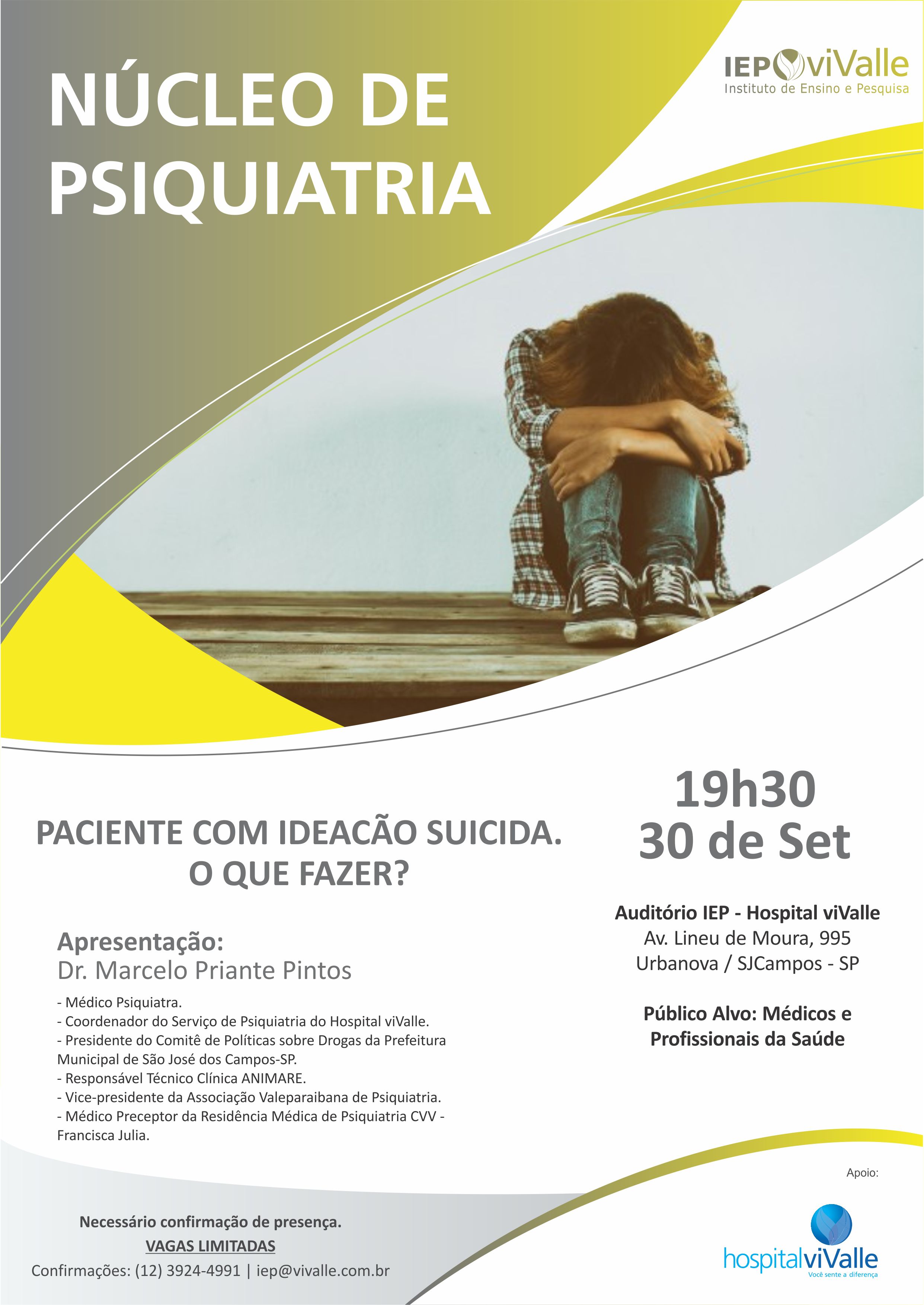 Núcleo de Psiquiatria IEP viValle apresenta “Paciente com Ideação Suicida. O que fazer?”.