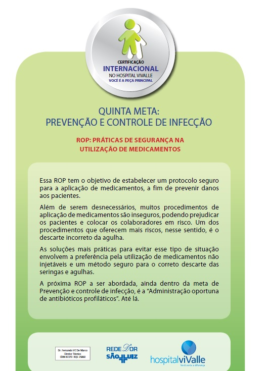 Essa ROP tem o objetivo de estabelecer um protocolo seguro para a aplicação de medicamentos, a fim de prevenir danos aos pacientes.