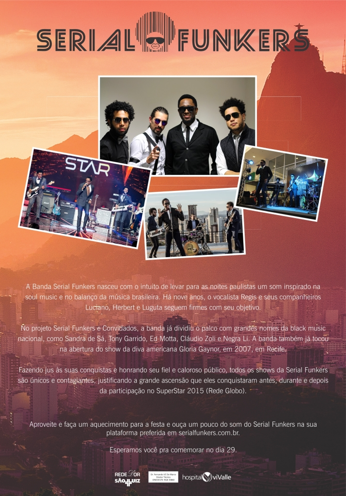 A Banda Serial Funkers nasceu com o intuito de levar para as noites paulistas um som inspirado na soul music e no balanço da música brasileira. Há nove anos, o vocalista Regis e seus companheiros Luciano, Herbert e Luguta seguem firmes com seu objetivo.