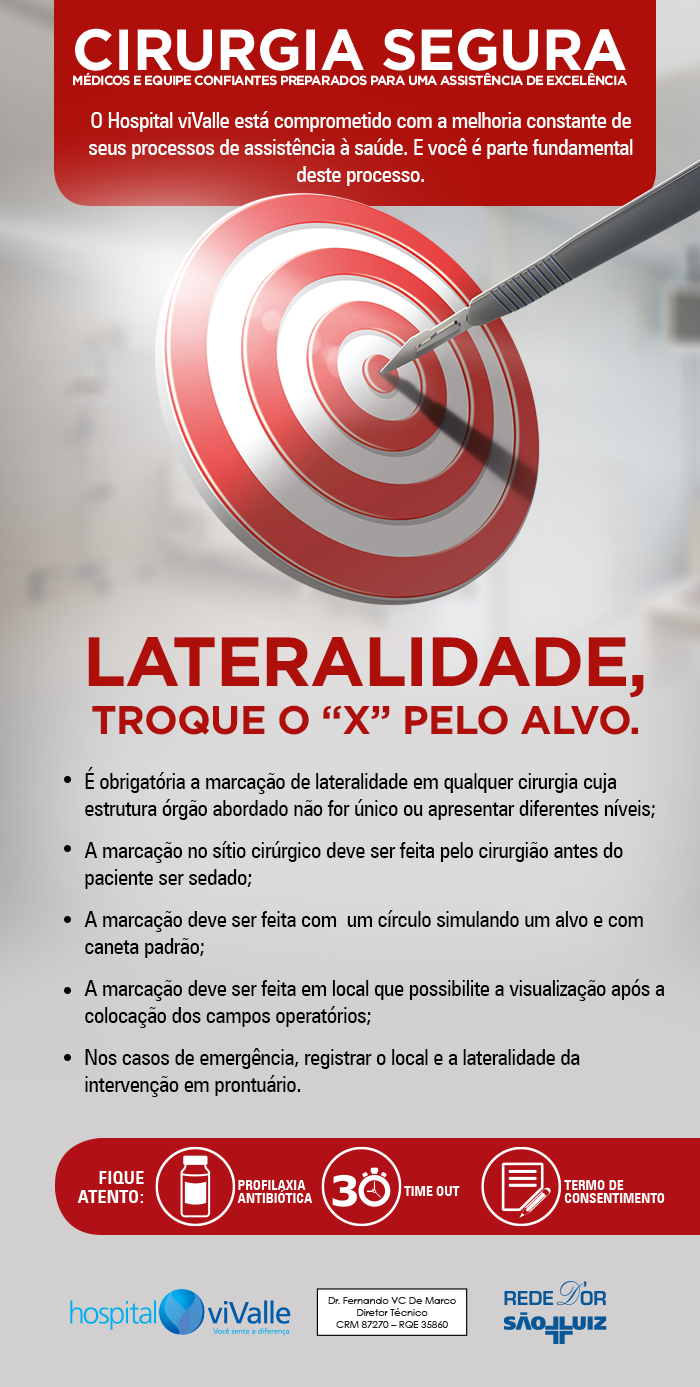 Você pode encontrar mais informações no Manual de Cirurgia Segura, parte integrante do Manual do cirurgião, disponível em http://www.espacomedicovivalle.com.br/area-aberta/documentos/3/Manuais/year:todos.