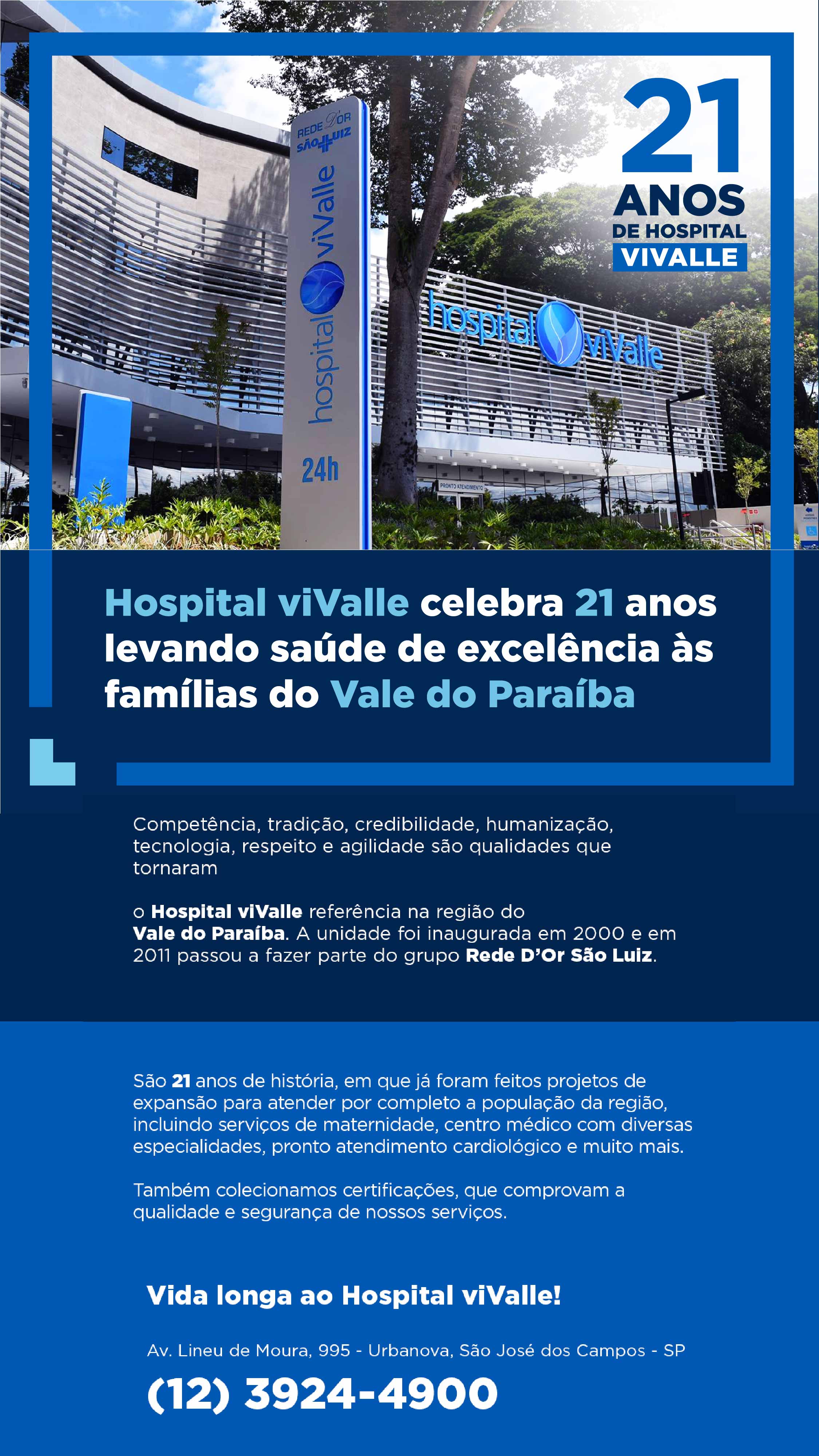 Hospital viValle celebra 21 anos levando saúde de excelência às famílias do Vale do Paraíba. E você faz parte da nossa história. Nossa gratidão!