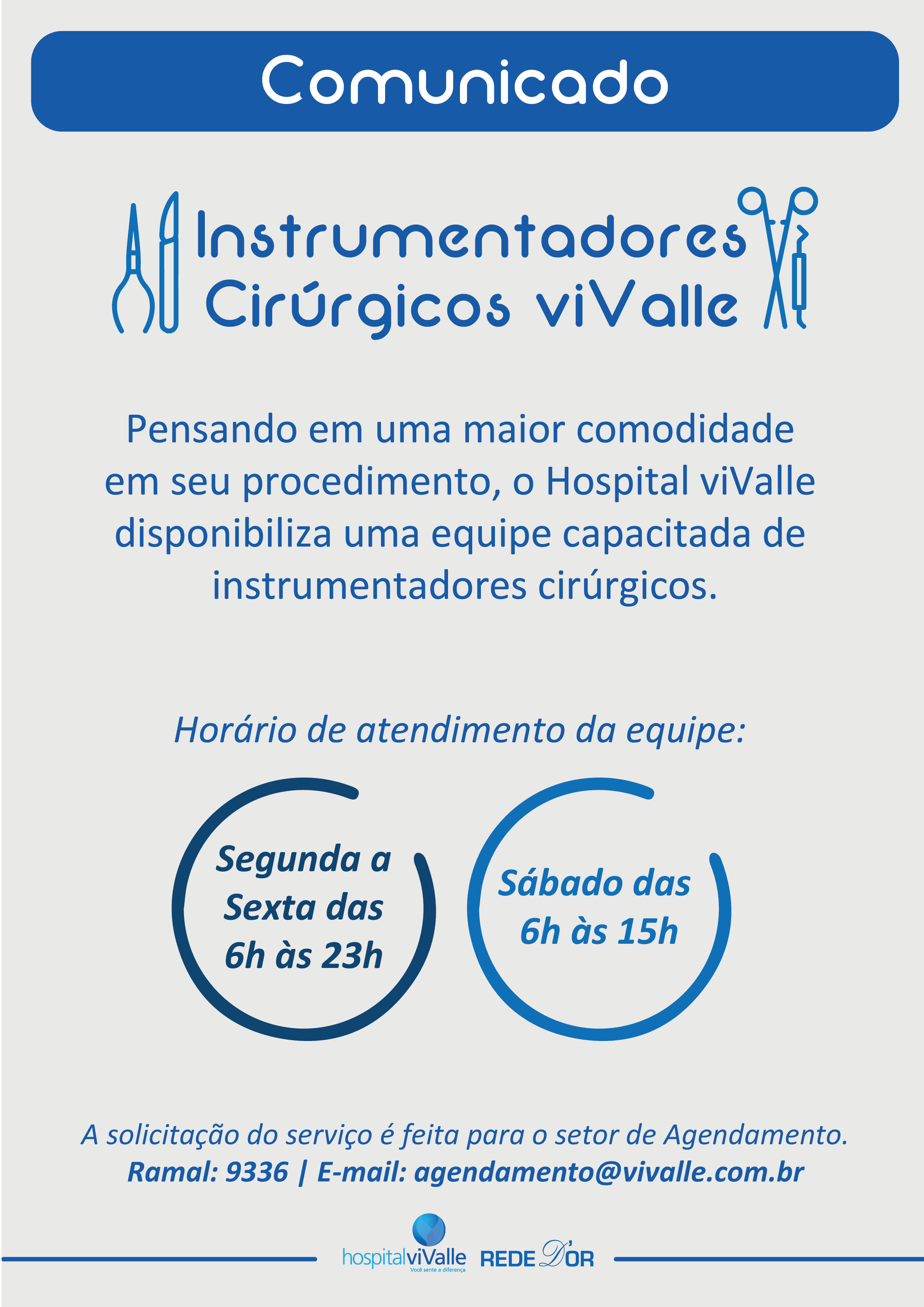Pensando em uma maior comodidade em seu procedimento, o Hospital viValle disponibiliza uma equipe capacitada de instrumentadores cirúrgicos.