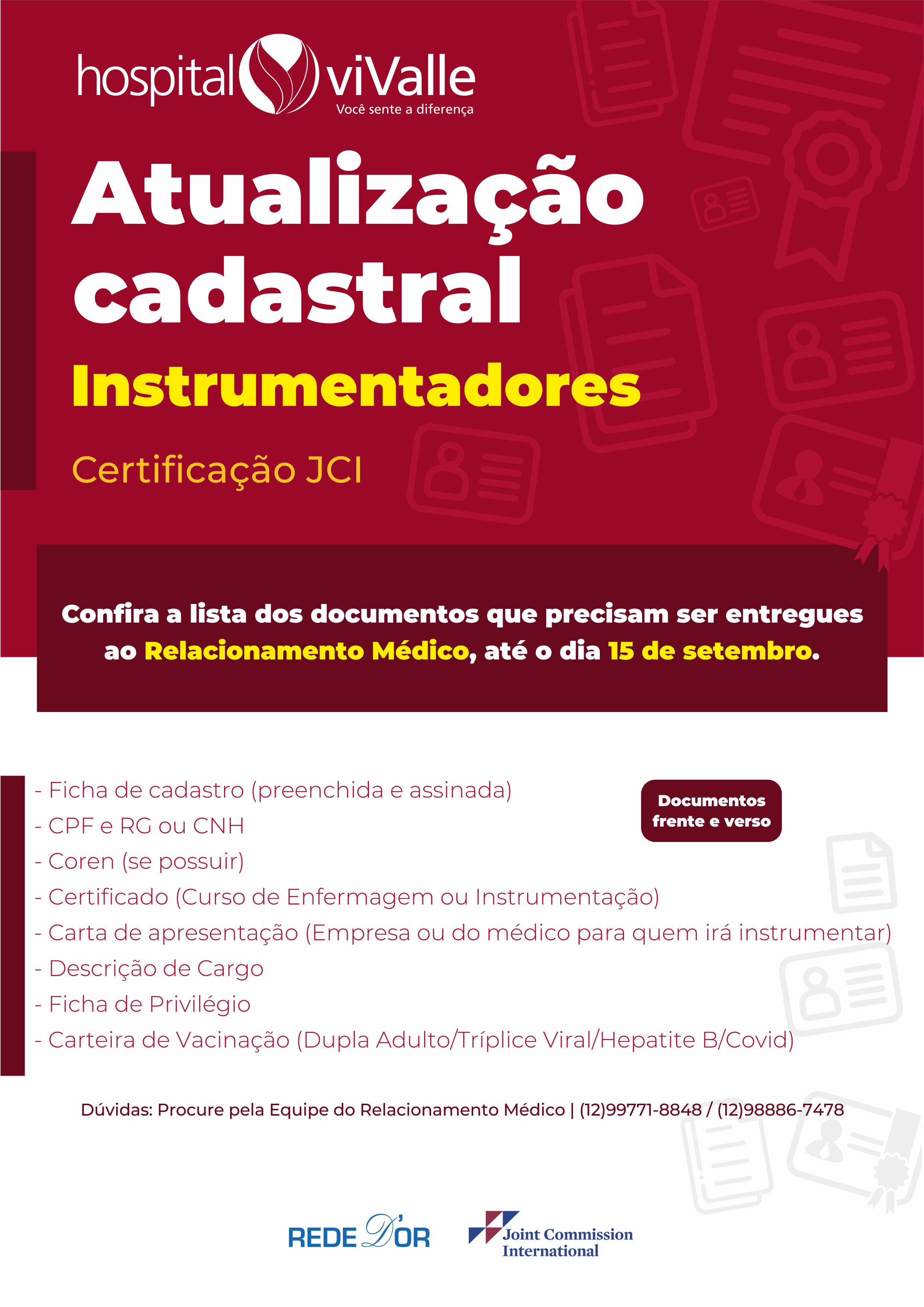 Confira a lista dos documentos que precisam ser entregues ao Relacionamento Médico, até o dia 15 de setembro.