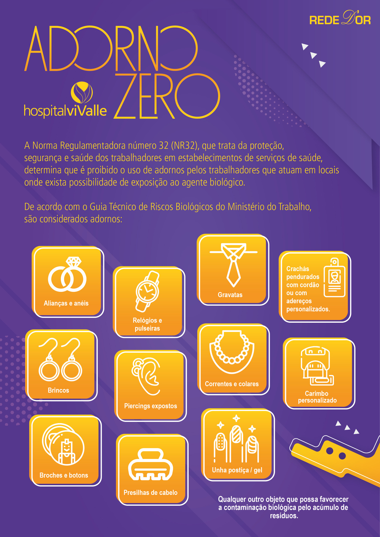 O Hospital viValle reforça que o uso indevido de acessórios ou adereços no ambiente hospitalar pode comprometer o estado de saúde do paciente e também dos colaboradores.