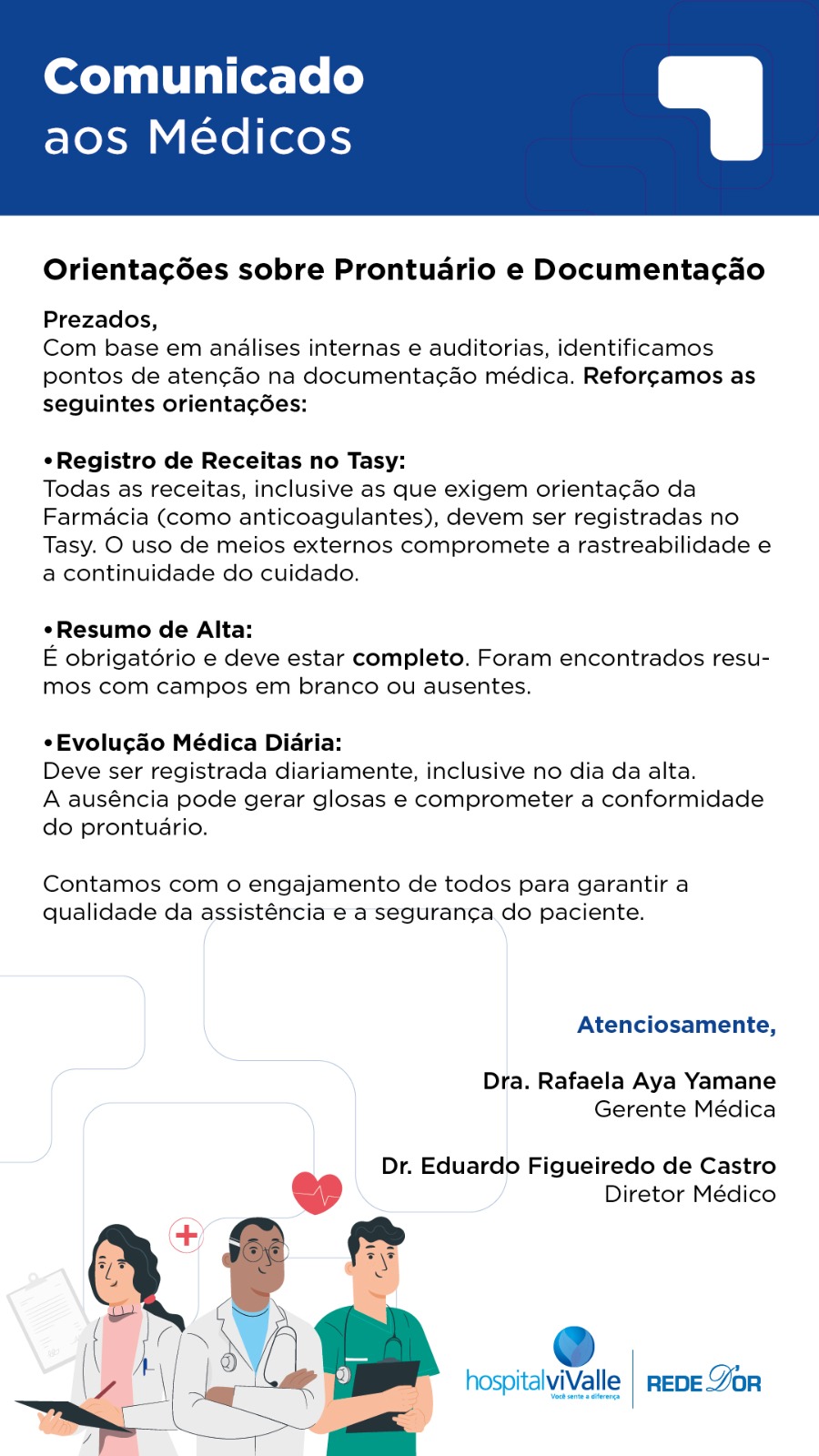 Com base em análises internas e auditorias, identificamos pontos de atenção na documentação médica. Reforçamos as seguintes orientações: